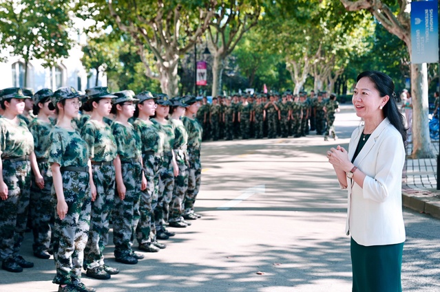9月16日,上海外国语大学党委书记尹冬梅亲切慰问承训教官与参训师生。