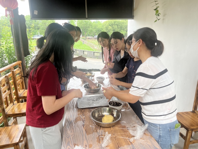 同学们亲手揉面、包馅,制作香甜的塌饼和米糕,手上沾满米粉的那一刻,真切感受到“粒粒皆辛苦”的真谛以及劳动带来的成就感。此次活动更让我振奋的是看到了新时代青年在乡村振兴这片“希望的田野”上大有可为——我们可以用双手和智慧,让九峰三泖间的千年稻香,在现代城乡融合的画卷中焕发新的生机与活力!