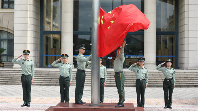 “稍息”,“立正”,伴随着嘹亮的口号声,升旗仪式正式开始。退伍毕业生们迈着整齐的步伐护送国旗入场,在雄壮的国歌声中,五星红旗冉冉升起,退伍毕业生全体行军礼。在疫情期间,这个光荣的集体曾有同学冲在抗疫的一线,传承家国情怀,激发使命担当,更时时刻刻感受到母校的关怀。同学们对祖国的告白与对母校的感恩凝聚为最庄重的军礼,将这一难忘的精彩瞬间定格。