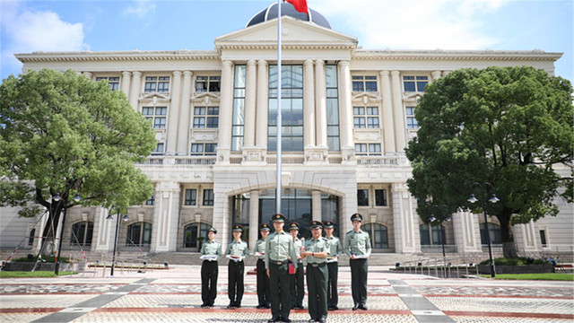 2020年7月3日上午9点,迎着初升的朝阳,2020届退伍毕业生在松江校区图文广场前举行升旗仪式,感恩母校,致以军礼,在毕业离校之际,举行一场特殊的毕业献礼。