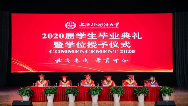 7月6日,上海外国语大学2020届学生毕业典礼暨学位授予仪式在松江校区教育会堂大礼堂举行。校党委书记姜锋,党委副书记王静,党委副书记、纪委书记钱玲,副校长杨力,副校长查明建,研究生院院长赵蓉晖出席典礼。典礼由王静主持。各院系及研究生培养单位师生代表现场参加了典礼,全体2020届毕业生在海内外通过线上直播形式观看了典礼。