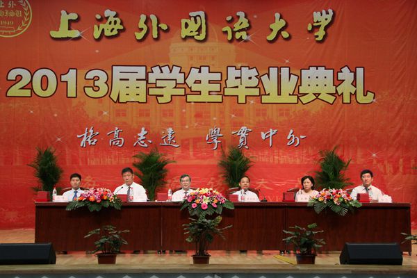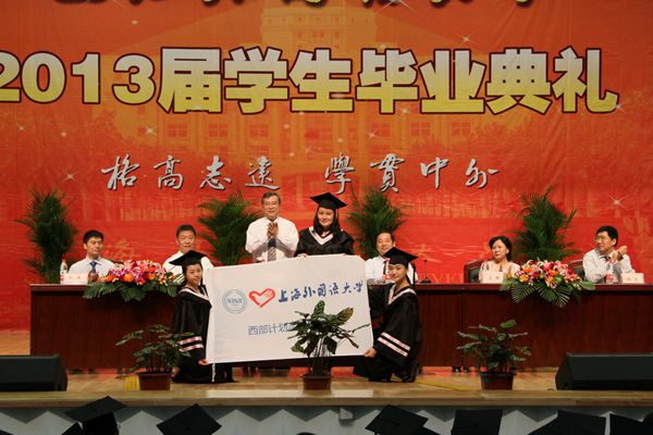校党委书记吴友富向“大学生西部计划志愿者服务队”授队旗;校党委副书记王静向参加“三支一扶计划”的毕业生颁发了荣誉证书;副校长张峰、杨力向参加“村官计划”的毕业生颁发了荣誉证书。全体校领导向荣获“2013年上海市高校优秀毕业生”的同学们颁发了荣誉证书。