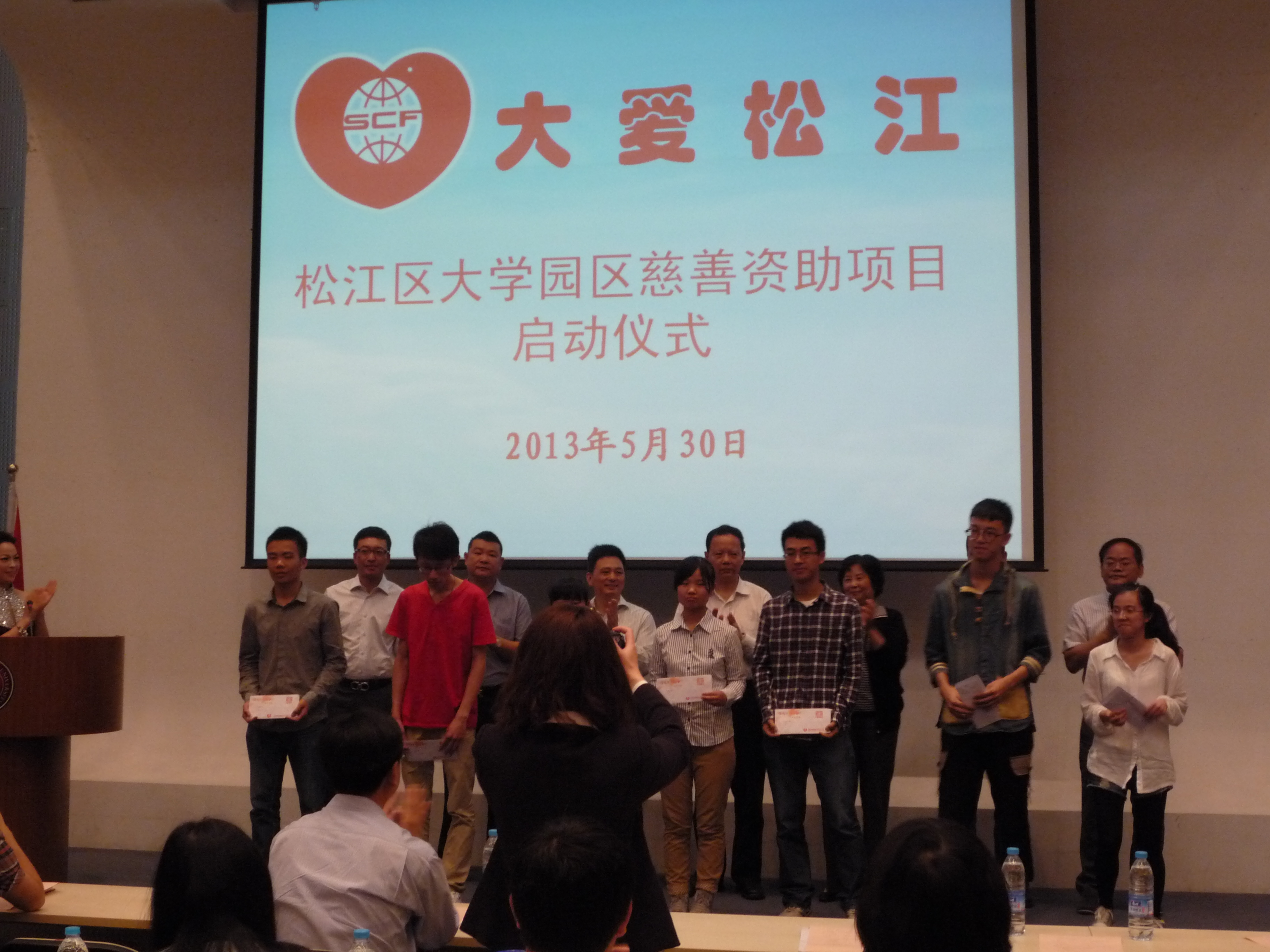 2013年5月30日,我校11名获得松江大学园区慈善资助项目学生参加了在东华大学举行的“大爱松江——松江区大学园区慈善资助项目启动仪式”。校大学生资助管理中心主任姚君君老师作为校方代表带队出席。