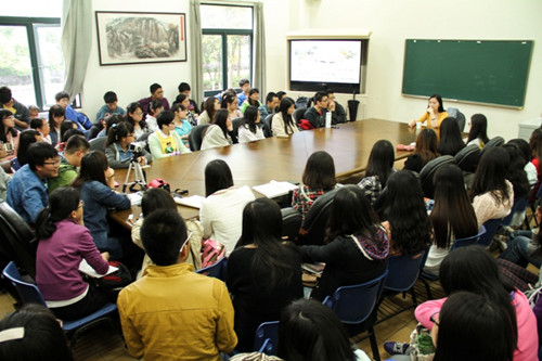 由校学生工作部(处)主办,东方语学院承办的“中国梦·青春梦”——09届阿拉伯语系校友王薇薇战地采访分享交流会于5月9日下午三点在东方语学院7107会议室举行。活动吸引了全校各个院系的学生参加,现场座无虚席,整个交流会过程中,王薇薇与学弟学妹们做了精彩的互动。活动现场掌声阵阵,轻松愉快的氛围贯穿始终。
