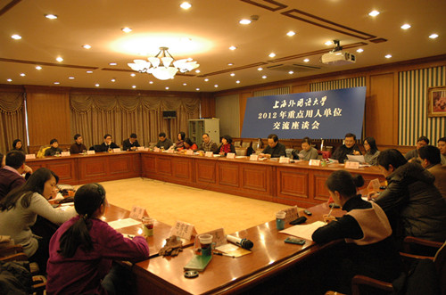 2013年1月4日下午,校学生处在虹口校区英伦厅举行了上海外国语大学2012年重点用人单位交流座谈会。
