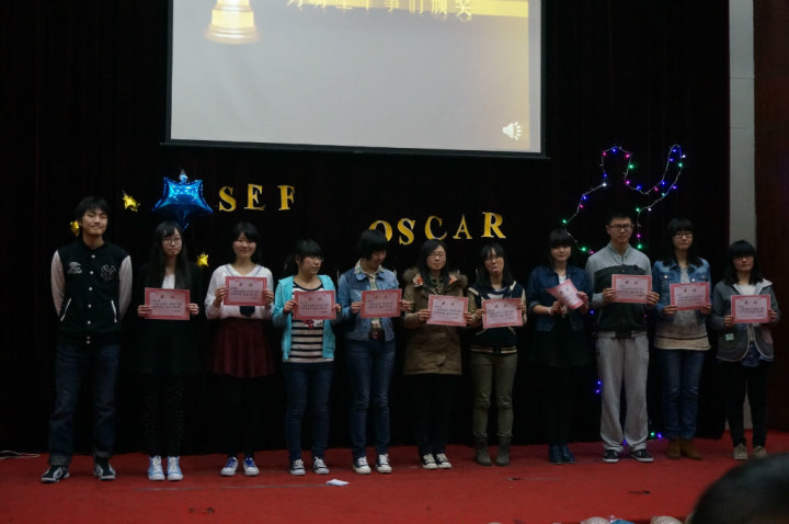 在主持人幽默风趣的主持中,活动进入到了部门表演环节,现场的气氛也轻松活跃了起来。每个部门纷纷拿出自己的看家节目,各个部门部员和部长齐上阵,联手演绎了一个又一个的精彩。同学们的创意十足,将一系列生活中的事物融合到了节目中,不乏笑点。改编版的爸爸去哪儿、武林外传、非诚勿扰等节目都给大家带来了欢笑,将现场的气氛推到了高潮。同学们在舞台上尽情的释放了自己的才能,热情洋溢的表演展示了青春的张扬与活力。期间穿插了为明星干事颁奖的环节,由团学联的主席给各位明星干事颁发了奖状,大家通过热烈的掌声传递了对优秀干事们的认可与赞扬。相信每一位在场的同学都能感受到满满的正能量,并且在今后的团学联工作中更加努力认真。其后由各位在场的嘉宾对每个部门的节目打分,评选出了优秀的节目,给予了小金人表彰。