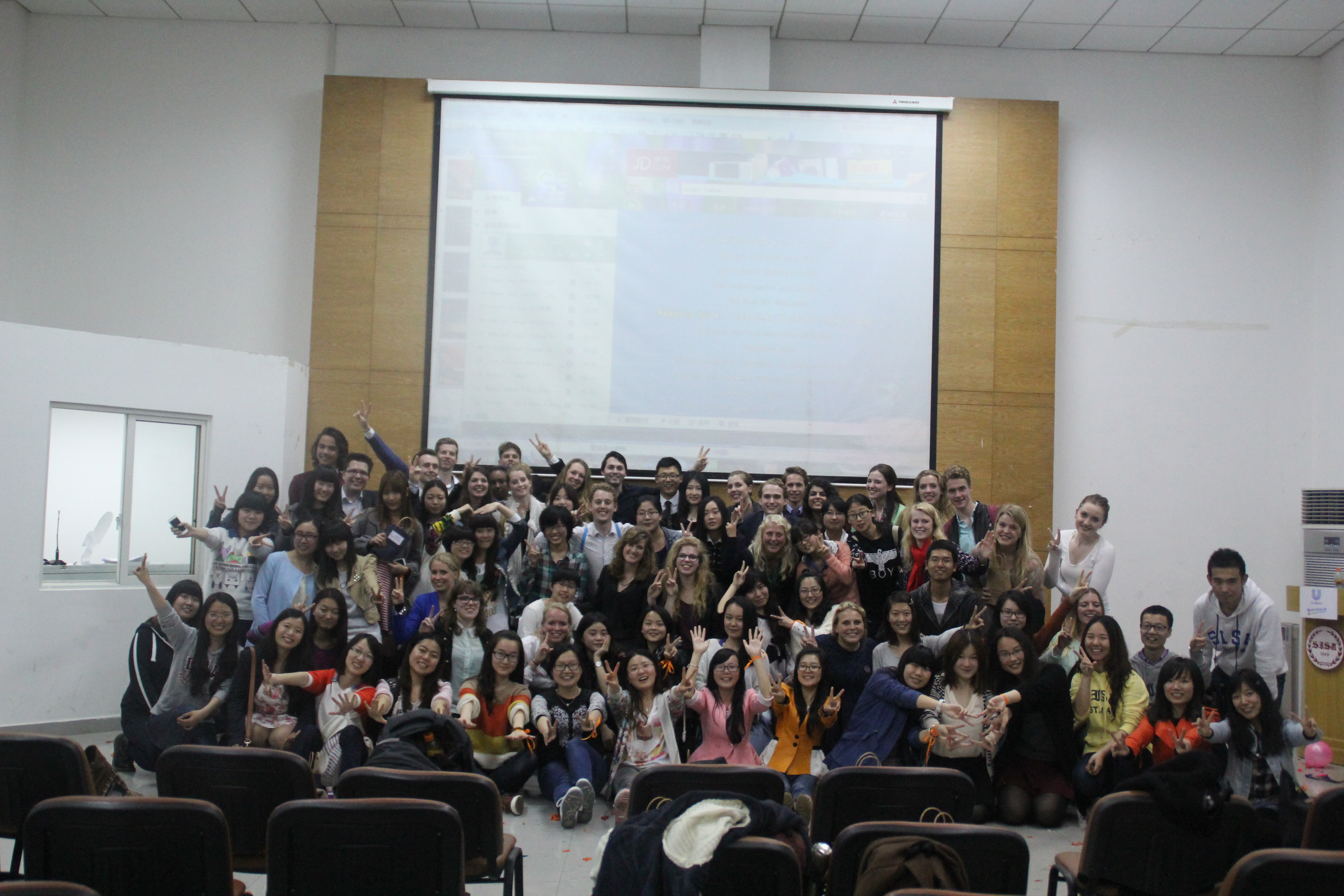 在Party中,我院两名曾前往莱顿大学留学的同学以幽默的方式分享了在莱顿的点点滴滴,用亲切的语气拉近了与访问团同学的距离。莱顿大学的同学们热情洋溢,在我院同学表演时报以热烈的掌声、欢呼鼓舞;在莱顿同学自己表演时活力四射,并带动我院同学与之一同歌唱、起舞。
