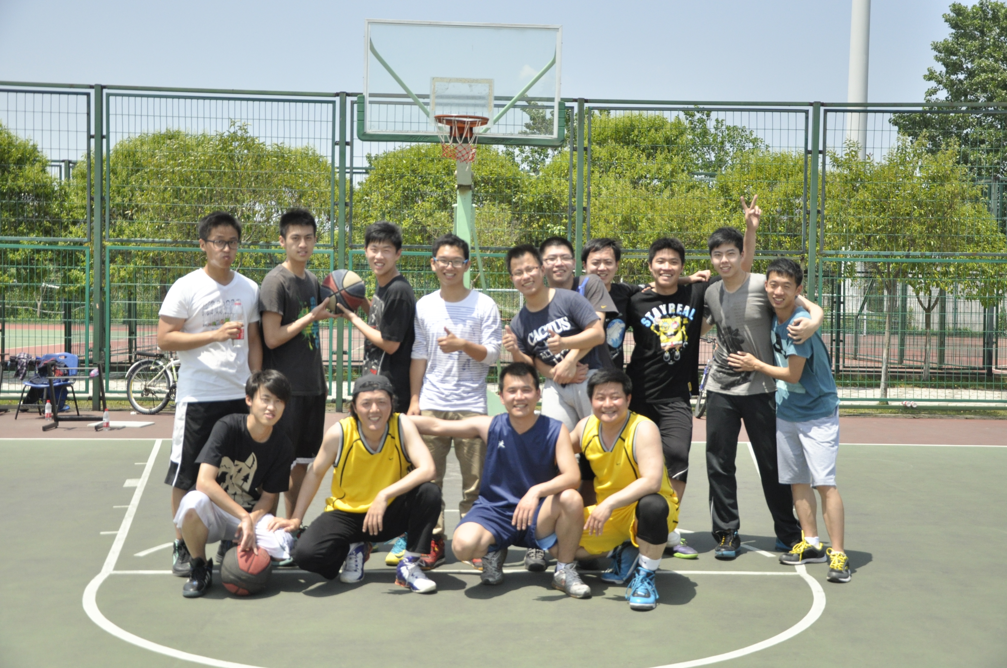 平日里讲台上下严肃谨慎的师生们都似乎换了一幅面孔,大笑着,大喊着。大家不分你我,在运动场上尽情奔跑,尽情欢笑。本次参加师生友谊赛的老师有三位:赵弢、孙淑伟和顾天柱老师。而参与到这场篮球赛里的同学们则包括了大一、大二甚至是大三的同学。大家都十分珍惜这次友谊赛的机会,顾天柱老师在第二节课上课前便吃了“午饭”,生怕吃饭耽误了比赛。