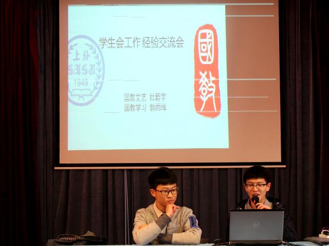 交流会现场:国教学生志愿者做分享交流
