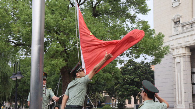 曾经,用军装装点青春,用无悔的忠诚报效祖国。现在,他们仍是校园生活里最为亮眼的排头兵,仍是广大同学间最为标准的楷模。他们一直秉持着那份执着与坚毅:知识的殿堂里有他们的身影,在母校他们充实自己,提升能力;志愿服务的岗位也有他们的身影,在母校他们奉献自己,心连社会。今天,满怀着对祖国的无限忠诚和对母校的无限感恩,他们聚集在五星红旗下,执行毕业前的最后一次升旗任务。