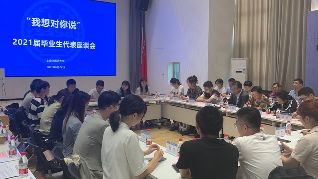 6月22日下午,“我想对你说”—— 2021届毕业生代表座谈会在松江校区师生活动中心举行。来自全校各院(系)和研究生培养单位、即将赴国家重点行业领域和基层就业的23名毕业生代表汇聚一堂,积极为学校的发展建设建言献策。校党委书记姜锋、党委副书记王静出席活动。