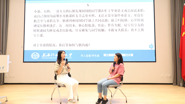 7月9日,上海外国语大学第三届辅导员素质能力大赛决赛在松江校区师生活动中心荟空间举行。本届大赛由学工党委/学生处主办、校辅导员协会承办,得到各院(系)、研究生培养单位领导和辅导员的大力支持与配合,进一步提升了我校辅导员队伍的理论水平、专业素养和育人能力。