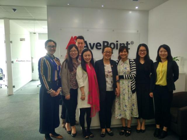 4月22日,学生工作部(处)代理部(处)长徐丽云一行走访了径点科技有限公司 (AvePoint, Inc.,以下称“径点科技”) ,并与公司达成合作,双方签订了共建实习基地协议。径点科技的人事经理单文懿、招聘主管王佳蕾参加了签约仪式。