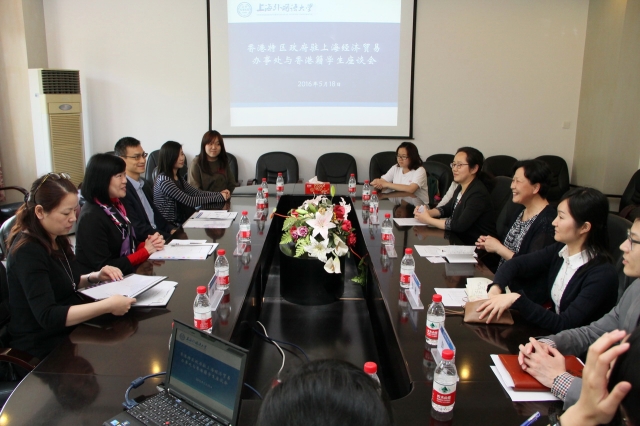 5月19日下午,香港特区政府驻上海经济贸易办事处代表团访问上外。代表团由香港特区政府驻上海经济贸易办事处主任邓仲敏女士带领,副主任钱志培、联络统筹经理易群随行。