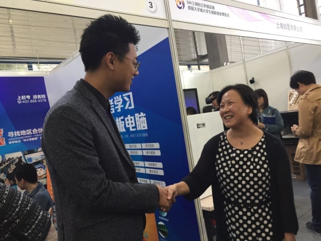 2016年10月28日—30日,“G60上海松江科创走廊首届大学城大学生创新创业博览会”在上海视觉艺术学院隆重召开,我校党委副书记王静出席了开幕式,并参观了博览会现场。会上,王静副书记与我校参展的创业团队做了亲切交流,并鼓励他们坚持创业梦想,在创业的征程上扎实走好每一步。
