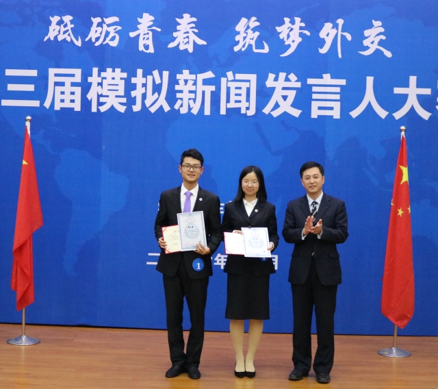 此次大赛吸引了全校近百名同学报名参赛,通过笔试和预赛,最终来自东方语学院、德语系、国际金融贸易学院、法学院、俄语系、英语学院的9组选手晋级决赛。决赛由开场秀、必答题与新闻评论、主旨新闻发布与答记者问、选手与评委面对面三部分组成。“主旨新闻发布”是比赛的一大亮点。选手进行2分钟的新闻发布后接受其他选手组成的记者团的现场提问,这考察了选手的外交知识储备以及临场应变等综合能力。比赛中,选手需要根据赛场的提问,及时、准确地作出回答。经过三轮激烈的角逐,来自东方语学院的杨沩桥和日本文化经济学院的郑韵组成的小组摘得桂冠,来自俄语系的唐潇、楼铣洁、王弈丹、敖登格一乐、东方语学院赵楠钰、法学院吴思玉荣获二等奖,其余同学均获三等奖。此外,东方语学院杨沩桥获得最佳新闻发布奖和最具潜质新闻发言人奖,俄语系楼铣洁获得最佳危机应对奖,法学院马泽寰获得最佳新闻评论奖,俄语系的唐潇、楼铣洁、王弈丹、敖登格一乐获得最佳人气奖。