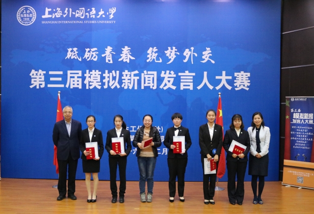 12月8日晚,我校在松江校区图文西厅成功举办了第三届模拟新闻发言人大赛。外交部新闻司公共外交处参赞兼处长刘禹同,中国国际广播电台原副总编辑、我校客座教授马为公,上海市人民政府外事办公室欧洲非洲处副处长、上海国际问题研究院信息研究所副所长励仿夏出席大赛并担当评委。