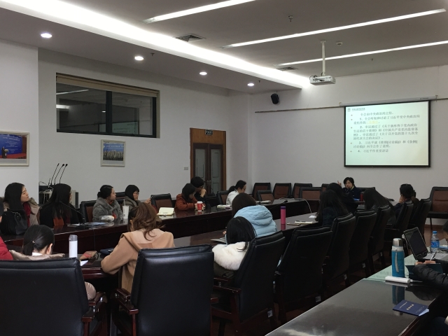 12月16日下午,学工部组织全体专兼职辅导员参加了十八届六中全会精神学习专题讲座,讲座由上海市委党校教授周敬青主讲。