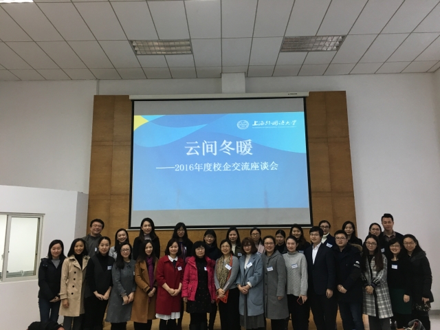 2017年1月5日上午,校学生处在松江校区教育会堂第一报告厅举行了“云间冬暖——上海外国语大学2017年校企交流座谈会”。