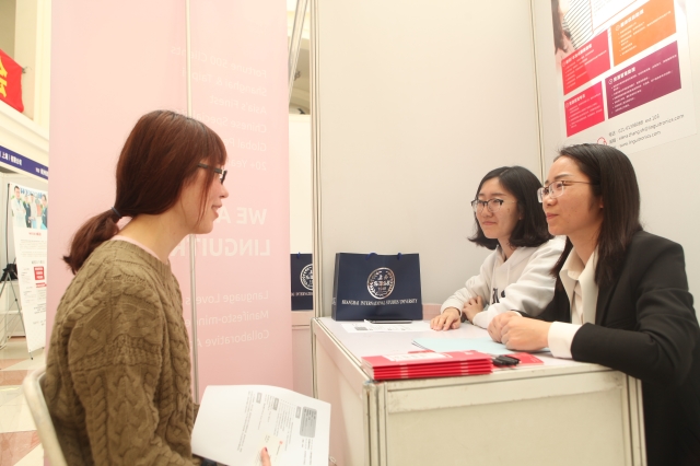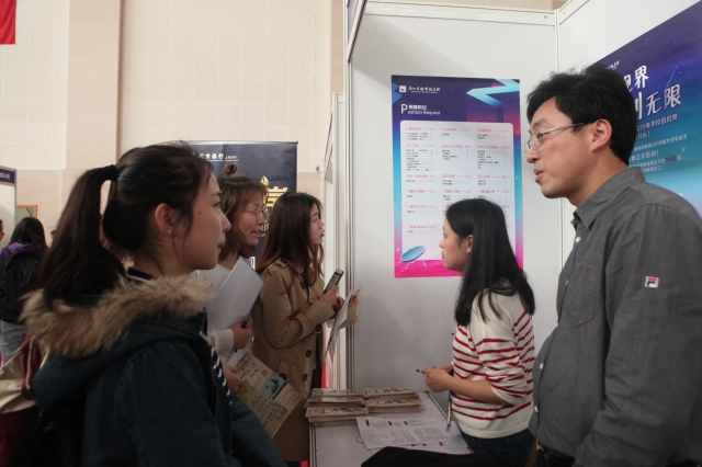 3月30日下午,上海外国语大学2018年就业实习招聘会在松江校区师生活动中心顺利举行。共有来自各个行业领域的158家单位参加了此次招聘会,提供就业岗位2684个,实习岗位857个。参加此次招聘会的单位包括中远海运集团、浙江广播电视集团、东方国际集团上海市纺织品进出口有限公司、通用电气、埃森哲(中国)有限公司、百威英博(中国)销售有限公司上海分公司、普华永道信息技术(上海)有限公司、SGS通标标准服务有限公司、上海外语教育出版社、内蒙古伊利实业集团股份有限公司、上海灿星文化传媒股份有限公司、上海民办包玉刚实验学校等各类用人单位,涉及IT、金融、商贸、咨询、科教、文化、传媒、快消、机械、纺织、化工、建筑、能源、地产、物流、公共服务等多个行业领域,其中大型国有企业及世界500强企业占据半壁江山。