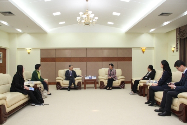 4月17日上午,美国张乃新教育基金会会长刘伦先生及夫人、“赠与亚洲”项目经理郭长艳一行访问上外,并与获得2017年度张乃新奖学金的学生座谈。校党委副书记王静亲切会见了刘伦先生一行。