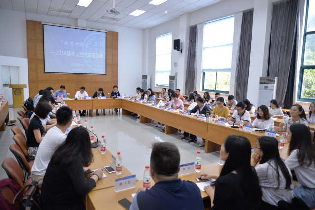 6月12日上午,上外在松江校区教育会堂第一报告厅举办“我想对你说”——2018届毕业生代表座谈会,来自全校各院(系)和研究生培养单位的30名本科、硕士和博士毕业生代表参加会议,分享了他们在上外学习生活的经历,并积极向学校建言献策。校长李岩松、党委副书记王静、副校长杨力出席座谈会,会议由研究生院院长赵蓉晖主持。