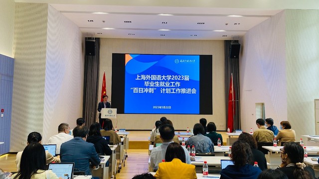 5月22日,上外2023 届毕业生就业创业工作推进会暨2023届高校毕业生就业“百日冲刺”行动部署会在松江校区师生活动中心荟空间召开,上海外国语大学校长李岩松、党委副书记王静出席会议,教务处、研究生院、招生办公室、校友会/基金会、学生工作部(处)、校团委负责人、各院系和研究生培养单位负责人、分管学生工作的党委(党总支) 副书记以及2023届毕业班辅导员共计40余人参加了本次会议。