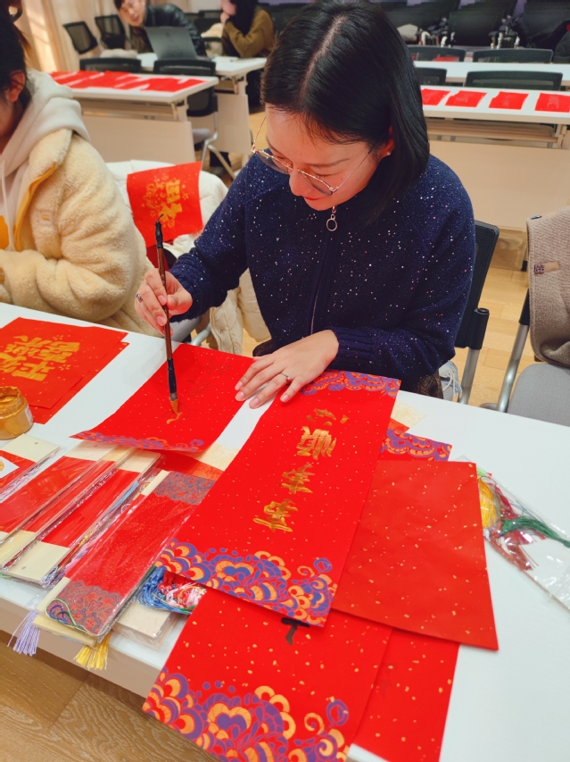 领略音韵之美后,老师们用巧手和书画表达新年祝愿。一副副对联,墨香中汇聚了学工人的深厚情怀;一张张窗花,甜蜜中凝结着对未来的美好期待。大家挥毫泼墨,巧手灵心,在融融暖意中亲密交流,共叙学工大家庭的温暖与友爱。