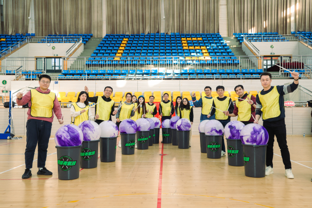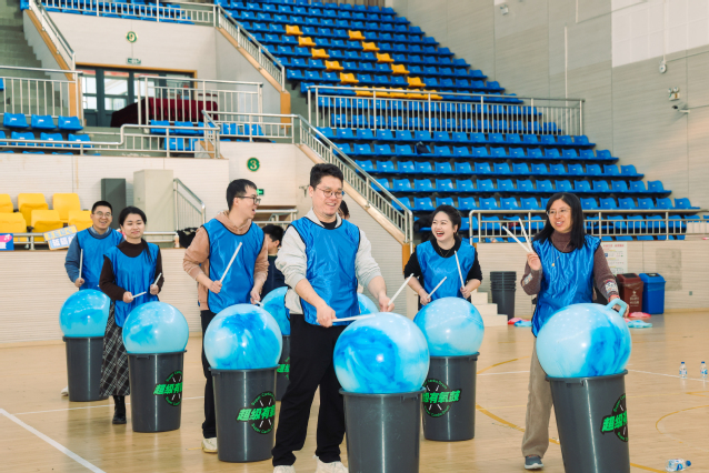 本次拓展活动以“超级有氧鼓”作为活动项目。在动感的音乐声中,老师们跟随领操老师的活力步伐,完成热身运动与开场舞蹈,唤醒身体和音乐感知。随后,大家组建团队,在一系列趣味游戏中调动智力和体力的双重参与,释放学工团队快乐“多巴胺”。神龙摆尾、音乐跑马灯、音乐飞球、听歌识曲……老师们全力以赴,各显其能,现场气氛十分热烈。